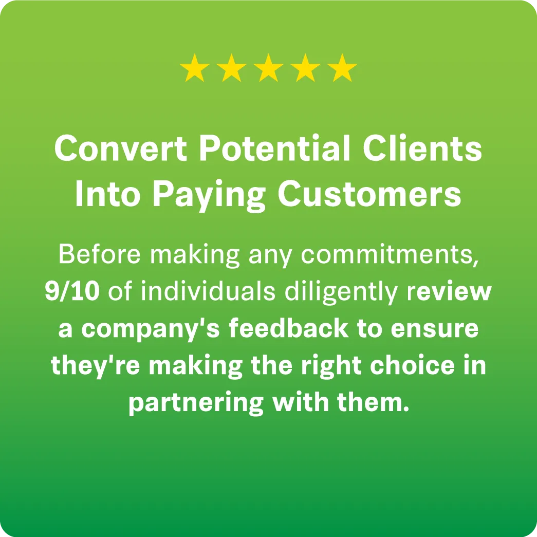Research shows that an overwhelming 80% of individuals trust reviews as much as personal recommendations from loved ones. With an increasing collection of genuine, favorable reviews, potential customers are inclined to engage with your business due to its sterling reputation.